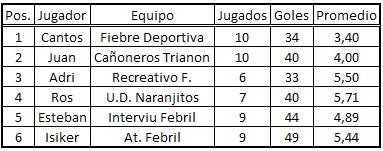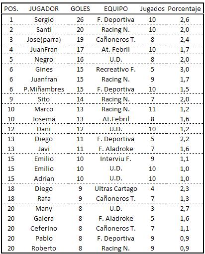 (Por cuestión de tamaño han caido la lista los que tienen menos de cuatro goles)